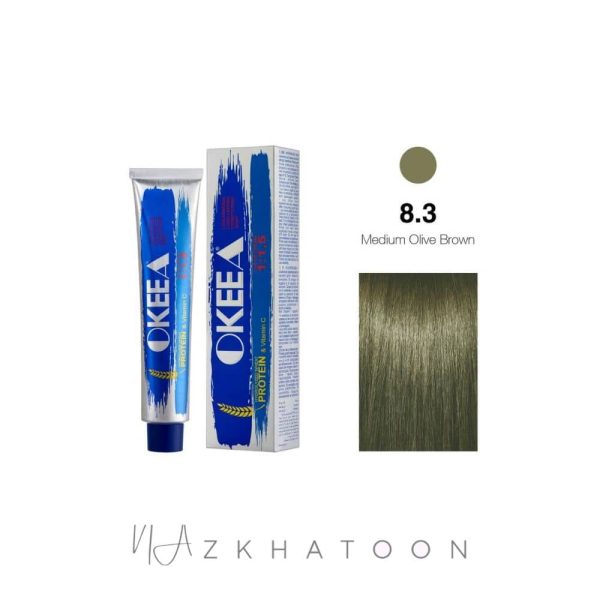 رنگ مو 100میل اکیا OKEEA سری OLIVE شماره 8/3 بلوند زیتونی روشن