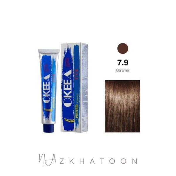 رنگ مو 100میل اکیا OKEEA سری CAFFE LATTE شماره 7/9 کاراملی