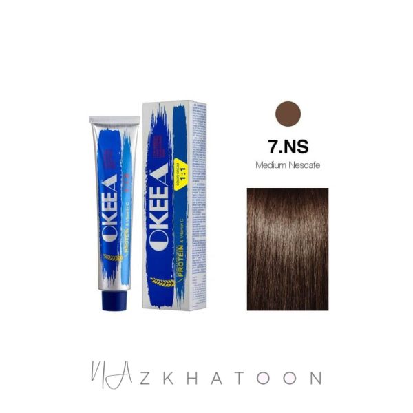 رنگ مو 100میل اکیا OKEEA سری CAFFE LATTE شماره 7NS نسکافه ای متوسط