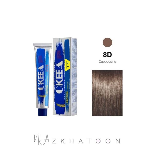 رنگ مو 100میل اکیا OKEEA سری CAFFE LATTE شماره 8D کاپوچینو