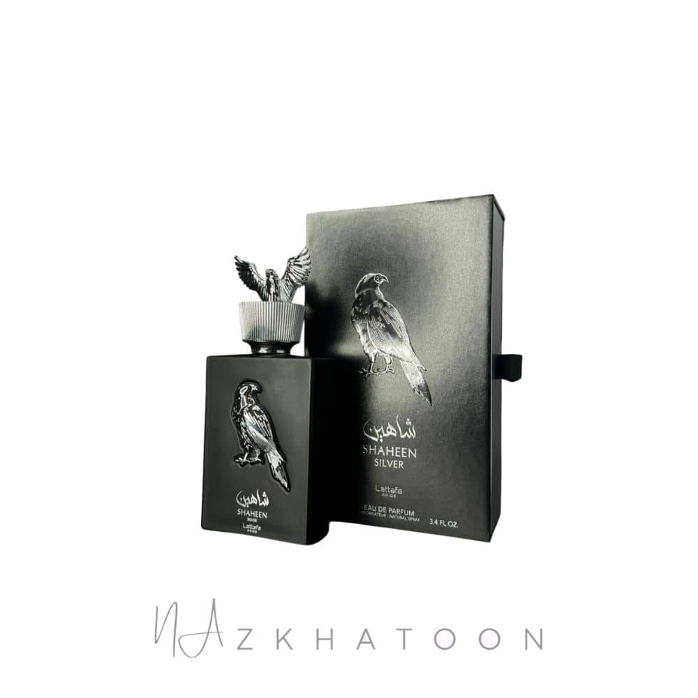 ادکلن مردانه شاهین سیلور (Shaheen Silver) از مجموعه لاکچری Lattafa Pride با طراحی خیرهکننده بطری مشکی مات، تزئین برجسته شاهین نقرهای و دربی با فرم عقاب بالگشوده، عطری باشکوه برای مردانیست که رایحهای جسور، متفاوت و خاص میخواهند. این ادوپرفیوم ۱۰۰ میلیلیتری با ترکیب نتهای آروماتیک و چوبی، تعادلی بینظیر از انرژی و وقار مردانه را ارائه میدهد.