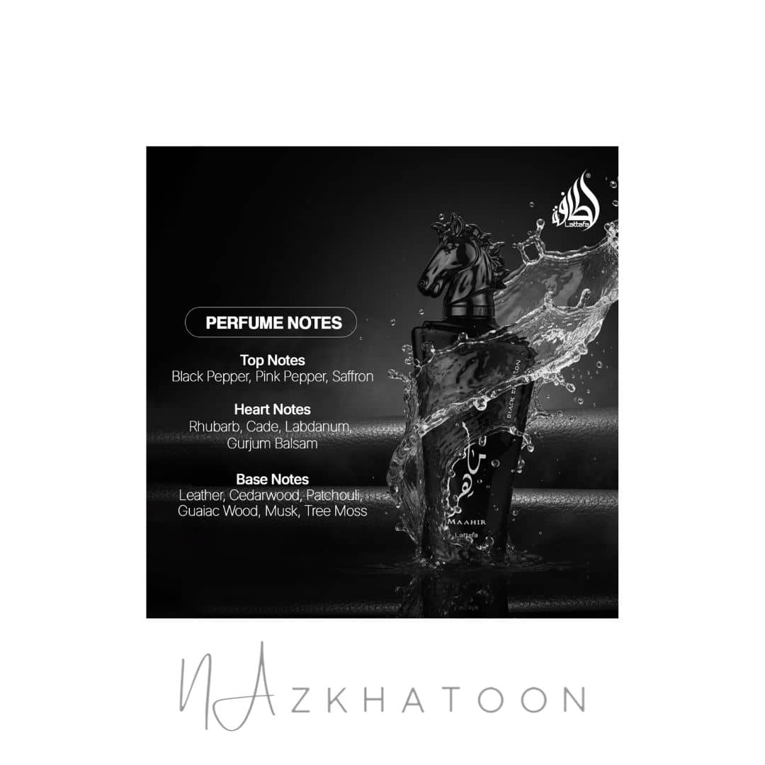 عطر ماهر بلک ادیشن لطافه (Lattafa Maahir Black Edition) یکی از محصولات برجسته و محبوب برند لطافه است که با ترکیبی از رایحه‌های شرقی و چوبی، تجربه‌ای لوکس و جذاب برای استفاده هم توسط آقایان و هم بانوان ایجاد می‌کند. این عطر یونیسکس با طراحی شیشه‌ای مشکی و مدرن، ظاهری شیک و منحصر به فرد دارد و به دلیل ماندگاری بالا و پخش بوی قوی، گزینه‌ای عالی برای مجالس رسمی، قرارهای خاص و استفاده روزانه است.