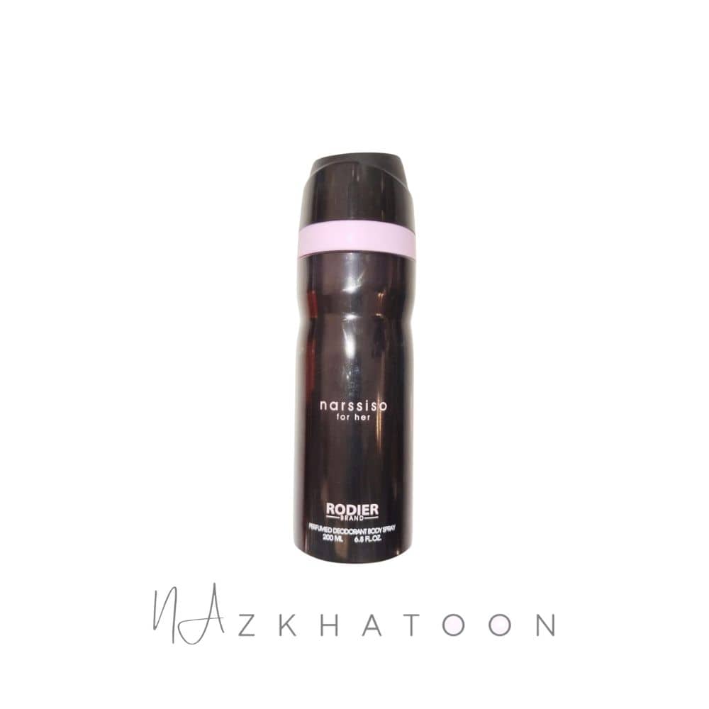 اسپری خوشبوکننده بدن زنانه رودیر رایحه نارسيسو فور هر (Rodier Narssiso For Her) با الهام از عطر محبوب Narciso Rodriguez، ترکیبی از لطافت زنانه و حس اغواگرانه است. این اسپری با حجم ۲۰۰ میلیلیتر، انتخابی عالی برای خانمهاییست که به دنبال رایحهای خاص، ماندگار و با کلاس هستند.