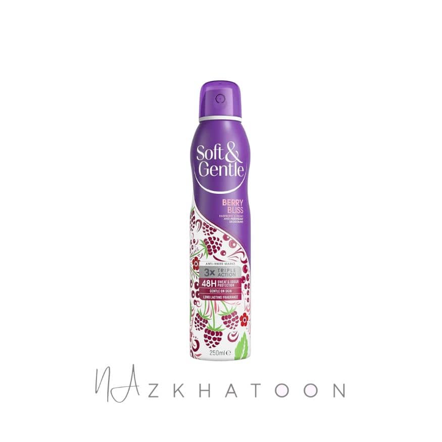 اسپری ضدتعریق سافت اند جنتل رایحه تمشک و گل صدتومانی | Soft & Gentle Anti-Perspirant Deodorant Raspberry & Peony
