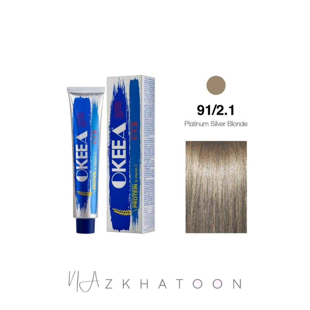 ویژگیهای رنگ موی اکیا OKEEA شماره 9/1.2 بلوند سیلور پلاتینه
