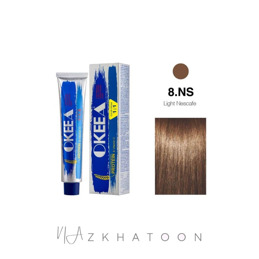 نحوه خرید رنگ مو اکیا OKEEA شماره 8NS نسکافهای روشن