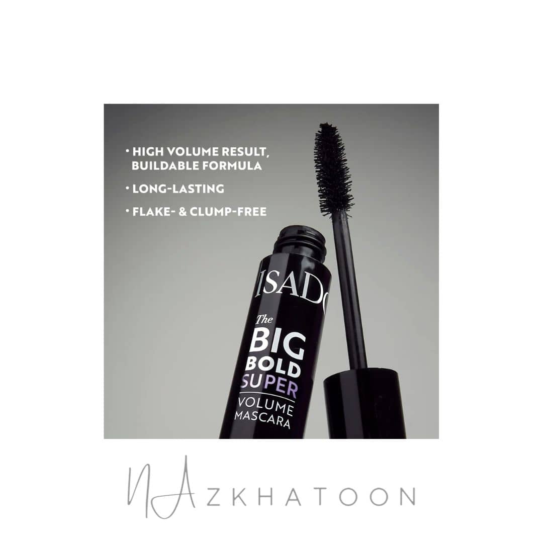 ریمل Big Bold Super Volume Mascara یکی از محصولات حرفه‌ای آرایش چشم از برند معتبر ایزادورا (ISADORA) است که با تمرکز بر افزایش حجم، ضخامت و جلوه مژه‌ها طراحی شده است. ایزادورا یک برند شناخته‌شده سوئدی در حوزه محصولات آرایشی است که به دلیل تولید محصولات وگان، فاقد رایحه و سازگار با پوست و چشم‌های حساس، محبوبیت بالایی در میان مصرف‌کنندگان حرفه‌ای و روزمره دارد.