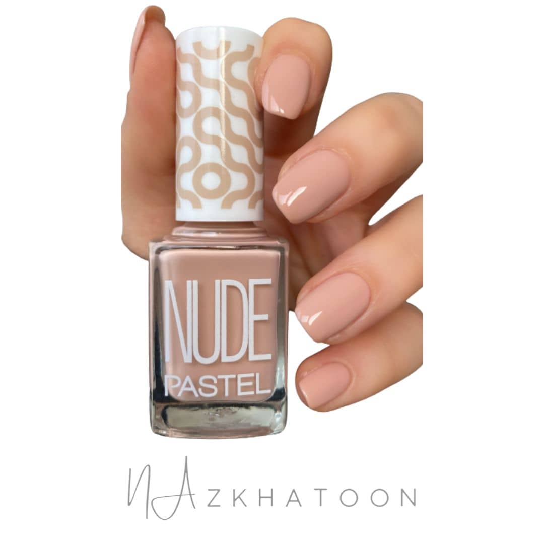 لاک Pastel Nude Nail Polish 762 Kind را با براش فلت از ریشه تا نوک ناخن بزنید.