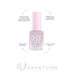 فرمولاسیون این شماره از سری Pure، با ماندگاری تا ۶ روز و پوشش یکنواخت با یک یا دو لایه، تجربه‌ای راحت و حرفه‌ای برای کاربران فراهم می‌کند. ترکیبات پاک و فاقد ۲۱ ماده مضر، سلامت ناخن‌ها را حفظ کرده و استفاده مداوم آن را ایمن می‌سازد.