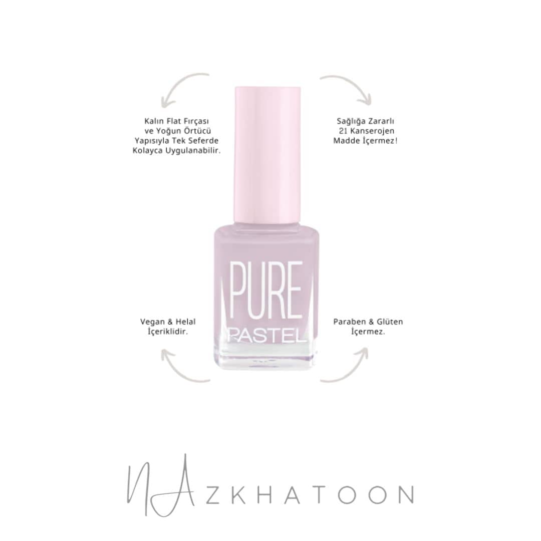 برند پاستل، با سابقه طولانی در تولید محصولات آرایشی و مراقبت ناخن، همواره کیفیت، سلامت ناخن و تجربه کاربری را در اولویت قرار داده است. سری Pure این برند با رنگ‌های خالص، پوشش یکنواخت و فرمولاسیون ایمن، انتخابی ایده‌آل برای کسانی است که می‌خواهند ناخن‌هایشان مرتب، طبیعی و جذاب دیده شود.