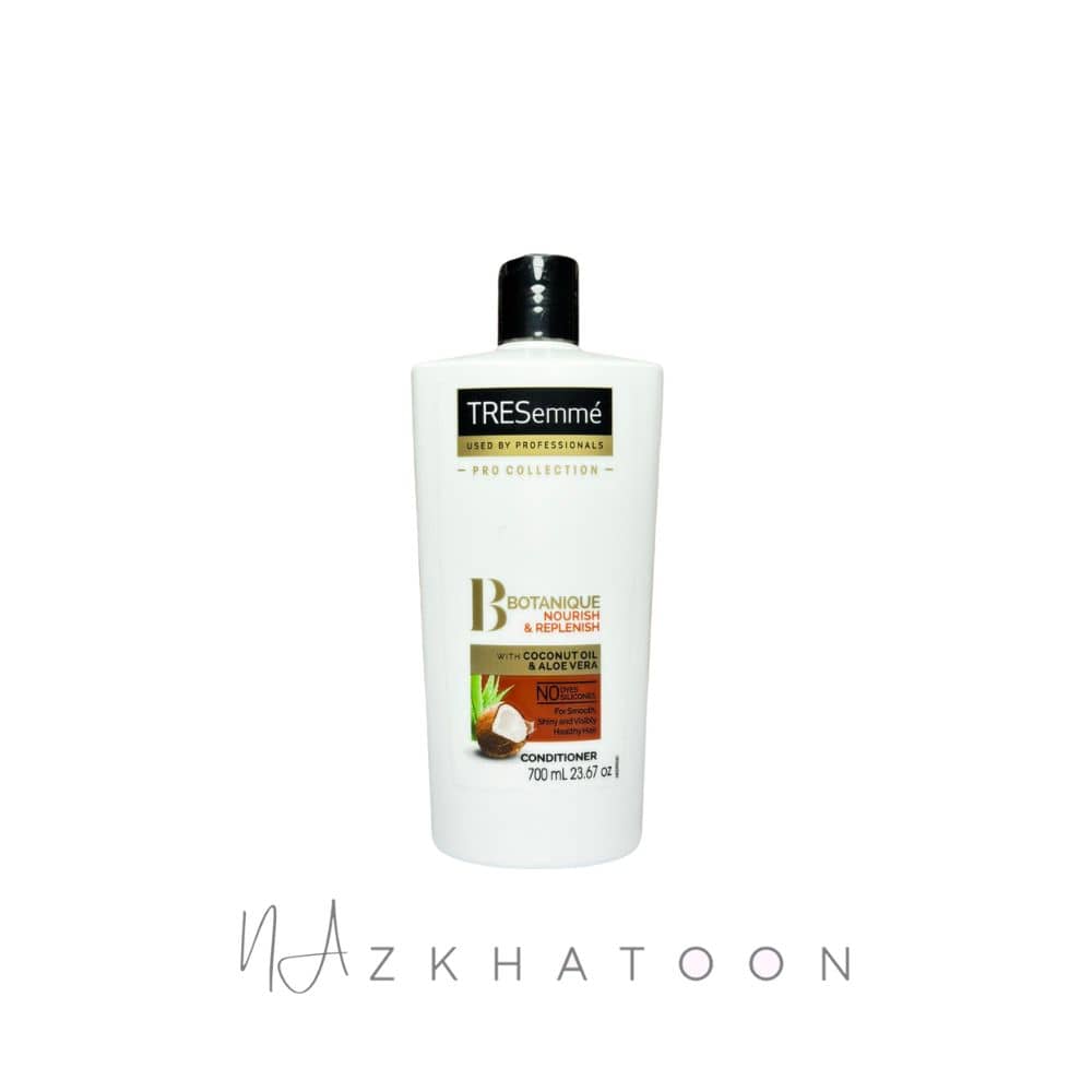 نرم‌کننده TRESemmé Botanique Nourish & Replenish با فرمولی غنی و گیاهی، شامل روغن نارگیل طبیعی و عصاره آلوئه‌ورا، یک محصول ایده‌آل برای مراقبت حرفه‌ای از مو در خانه است. این نرم‌کننده موهای خشک، زبر یا آسیب‌دیده را تغذیه کرده، ساقه‌ها را مرطوب و ترمیم می‌کند و ظاهری صاف، نرم، براق و سالم به موها می‌بخشد.