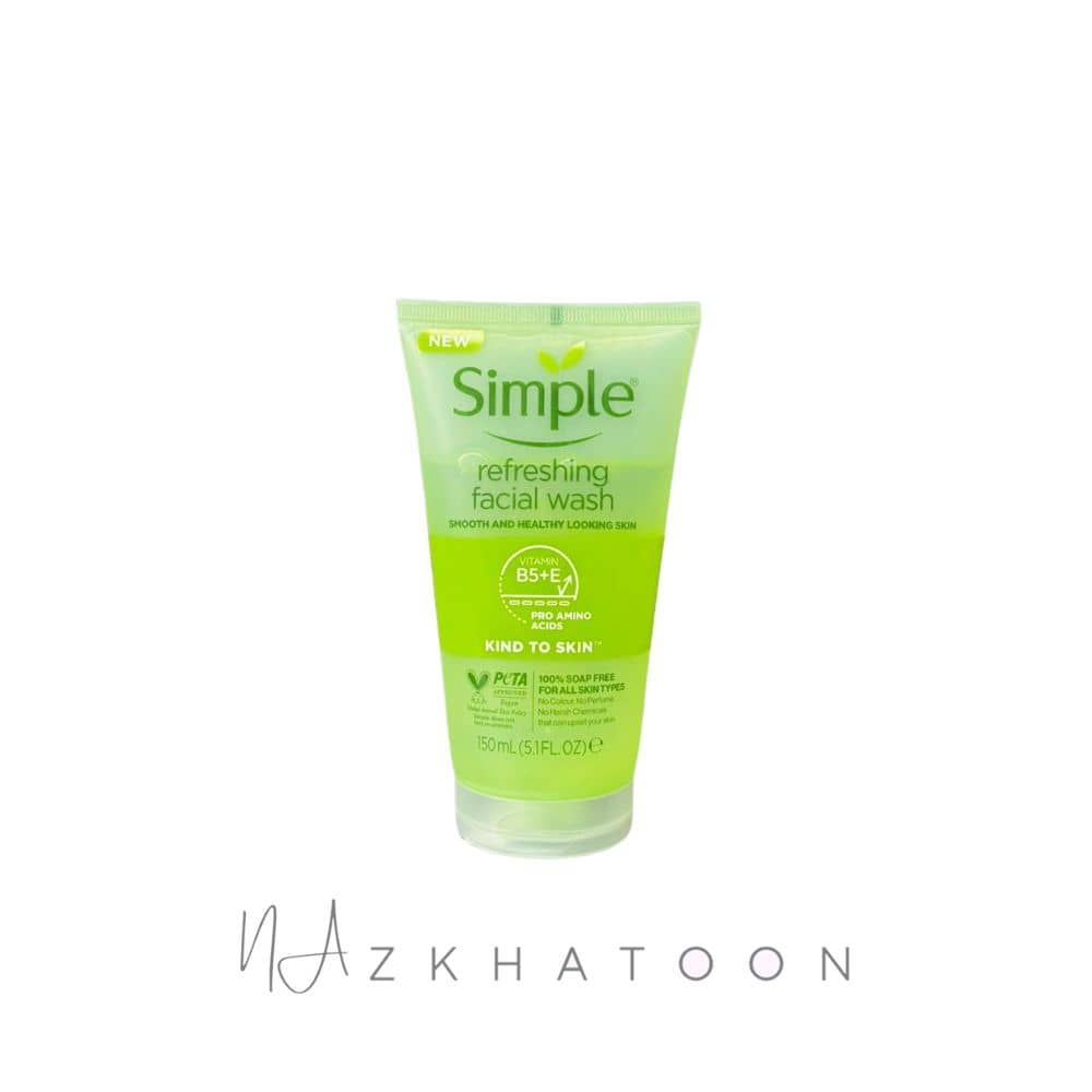 ژل شستشوی صورت سیمپل ریفریشینگ با فرمول KIND TO SKIN™ حاوی پروویتامینهای B5 و E، پوست شما را به آرامی تمیز، نرم و تازه میکند. این محصول ۱۰۰٪ بدون صابون، بدون رنگ، بدون عطر و بدون مواد شیمیایی خشن طراحی شده و برای انواع پوست حتی پوست حساس مناسب است. با استفاده منظم، پوست شما احساس تازگی، شادابی و طراوت طبیعی خواهد داشت.